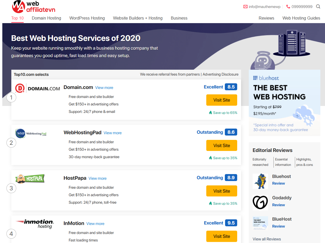 Thiết Kế Website Affiliate Bán Domain Hosting